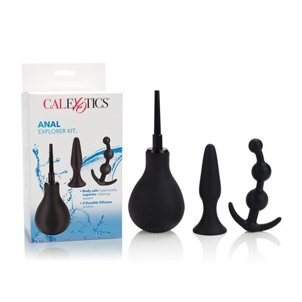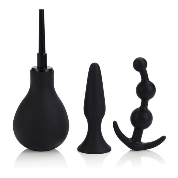 Versatile easy-to-use kit. Anal douche with soft flexible vacuum bulb and removable tapered tip. Tapered Silicone probe with superior suction cup. Premium Silicone graduated angled tiered probe.