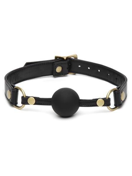 A ball gag is a round ball that fits into the mouth , held in place with a strap that passes through the centre of the ball, and then goes around the wearer’s head. The ball, known as the gag, will then fit behind the teeth, which then makes it impossible for the wearer to speak intelligibly. Speech aside, wearing a ball gag can also cause the wearer to drool and make awkward facial expressions, which could be used as a form of ridicule .