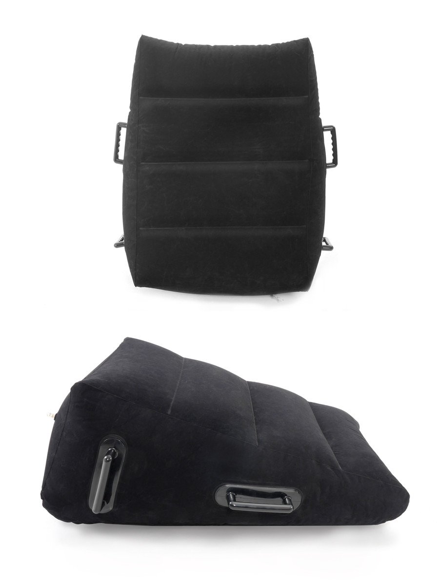 Indulge in your wildest fantasies with this Ultra Inflatable Position Master. The slanted, flocked design allows you to relax in any position without sliding off, while the EZ-Grip love handles are perfect for maintaining difficult positions without losing your rhythm. The air seal valve makes inflating the wedge a snap, and when the fun is over, simply deflate the Position Master and it's ready to go where you go. It's perfect for those romantic getaways and no one will know whats in your bag! Do it all with greater ease...no matter what position you're in! And lubricant doesn't even show up on the surface making it easy to clean, too!