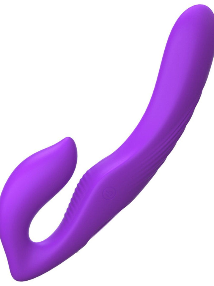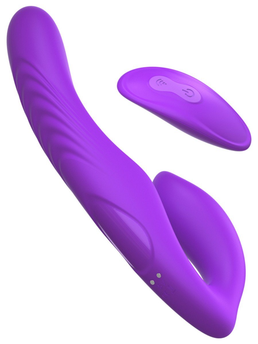 She pressed the button on the side of Her Ultimate Strapless Strap-On and then on the rechargeable remote control, which blinked to show it was ready. She pressed the button on the remote again, and two motors came to life, sending tingling vibrations to tickle her G-spot while intense vibrations thrilled her partner on the other end. She smiled knowing that she and her partner would both enjoy this arousing stimulation as she pressed the button again and again to enjoy 9 fulfilling vibration patterns.
