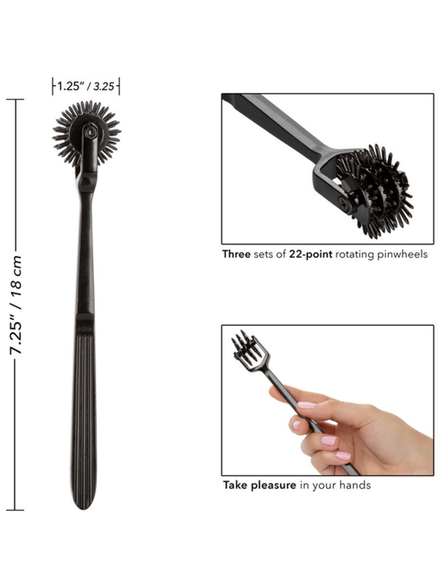 Indulge in thrilling pleasure with the beautiful Scandal® Trio Pleasure Wheel, a teasing pleasure wheel with three 22-point wheels. Made from a heavy-duty, non-tarnishing nickel-free Zinc alloy for the ultimate in luxurious excitement and an amazing feeling in hand. With every roll across your wanting skin, this passionate wheel will thrill, excite and elevate your every intimate moment.