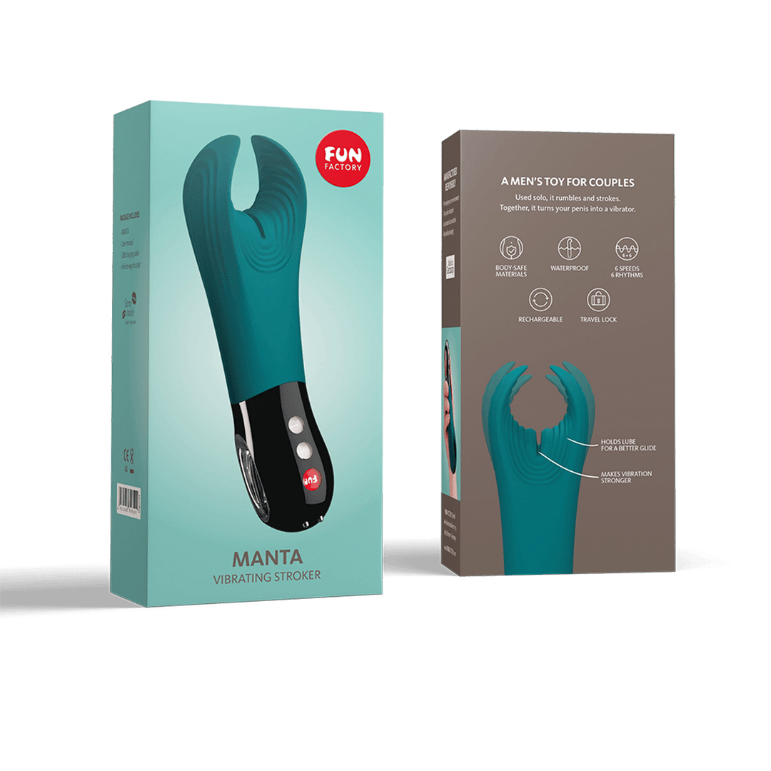 FUN FACTORY Manta is a vibrating stroker that can be used solo or with a partner. FUN FACTORY Manta is sleek and easy to handle with Fun Factory’s signature loop and ridges specifically designed to hold lube for a better and longer-lasting glide.