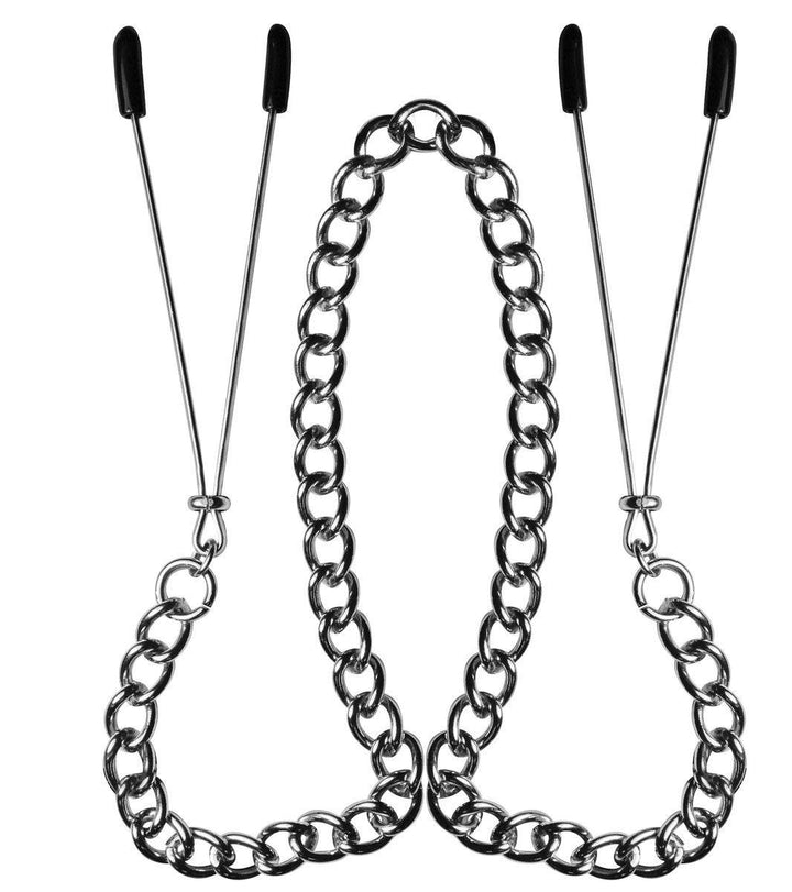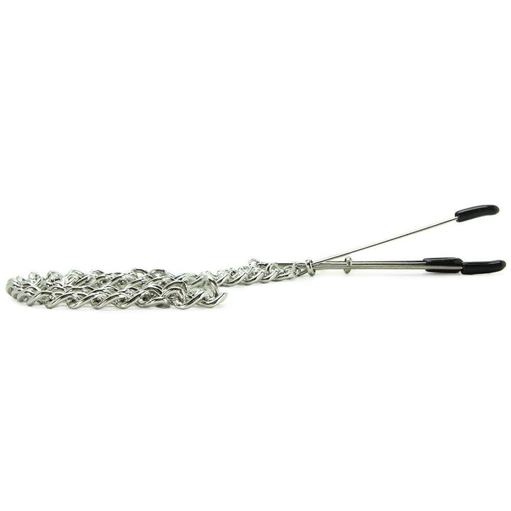 With rubber-enrobed tips to ensure a comfortable clamping sensation, these attractive clips are great for curious newcomers to the BDSM experience, but will remain an essential in your toy collection. Feel in control of your partner’s pain and pleasure, gradually increasing the pressure with the easy-to -use sliding ring. A connector chain provides the extra pull towards a heightened climax.
