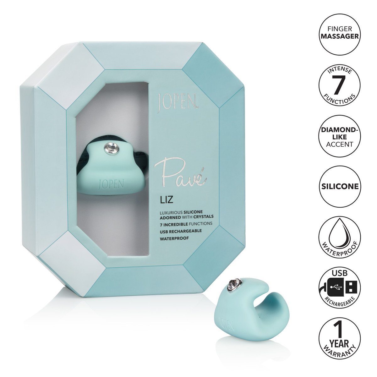 Treat yourself to the luxurious Pavé Liz and let tease you towards orgasmic bliss with the unique ring shape and 7 powerful functions of vibration. Let this marvelous mini vibe dazzle you with its compact size, plush silicone and sparkling crystal adornments.