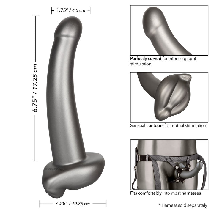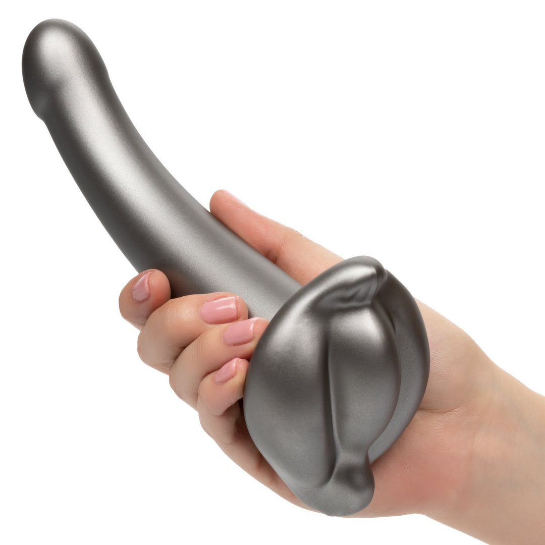The accentuated probe and rigid shaft are created to perfectly tease intimate curves and indulge internal sweet spots for your lover, while you get lost in the teasing contoured base. This powerful probe is made for mutual stimulation and satisfaction with a perfectly contoured base, and a g-spot teasing curved shaft. Made to caress yours, and hers, most intimate curves for double the orgasmic pleasure.