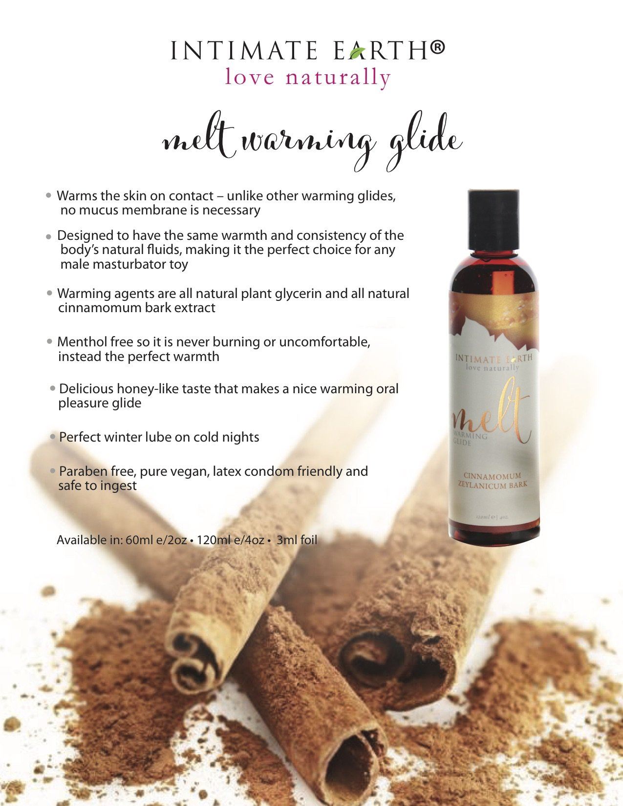 MELT – a warming glide that contains an intriguing sounding “Cinnamomum Zeylanicum” Bark extract, unlike other warming glides that can contain menthol, which is an irritant, Melt’s unique formula warms the skin on contact through natural derived glycerine and the cinnamomun extract.