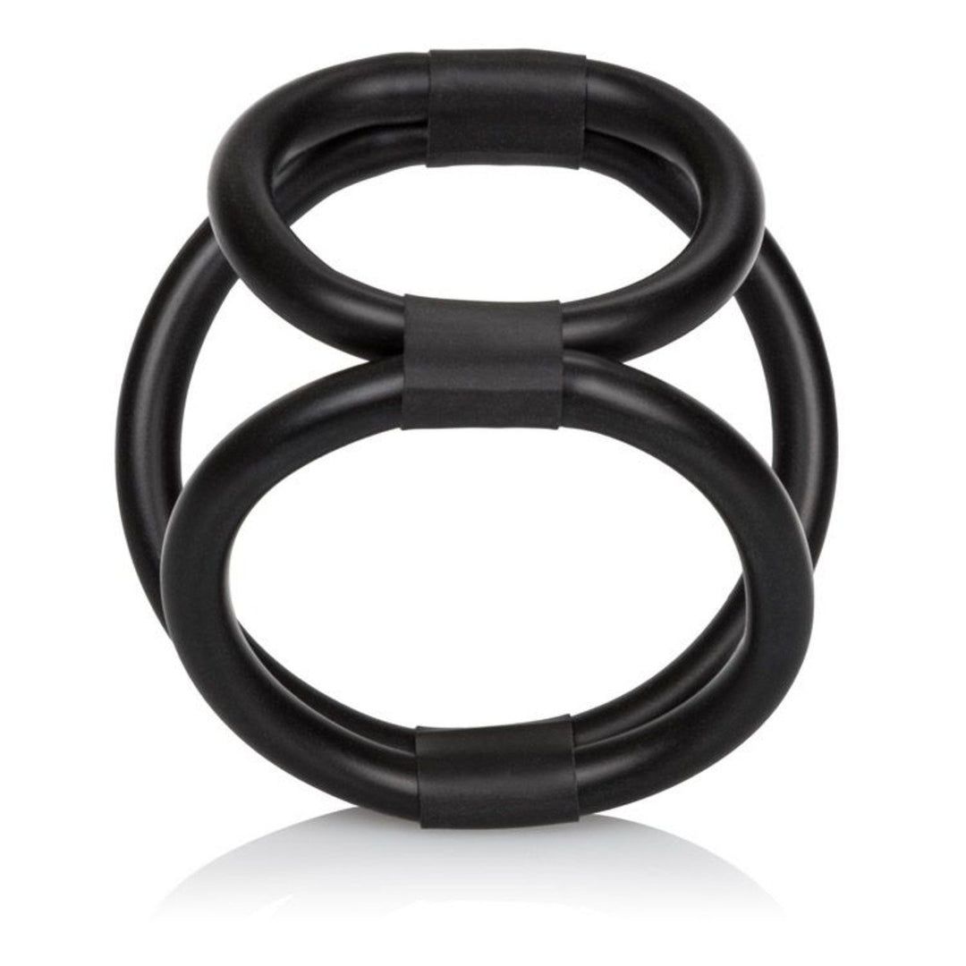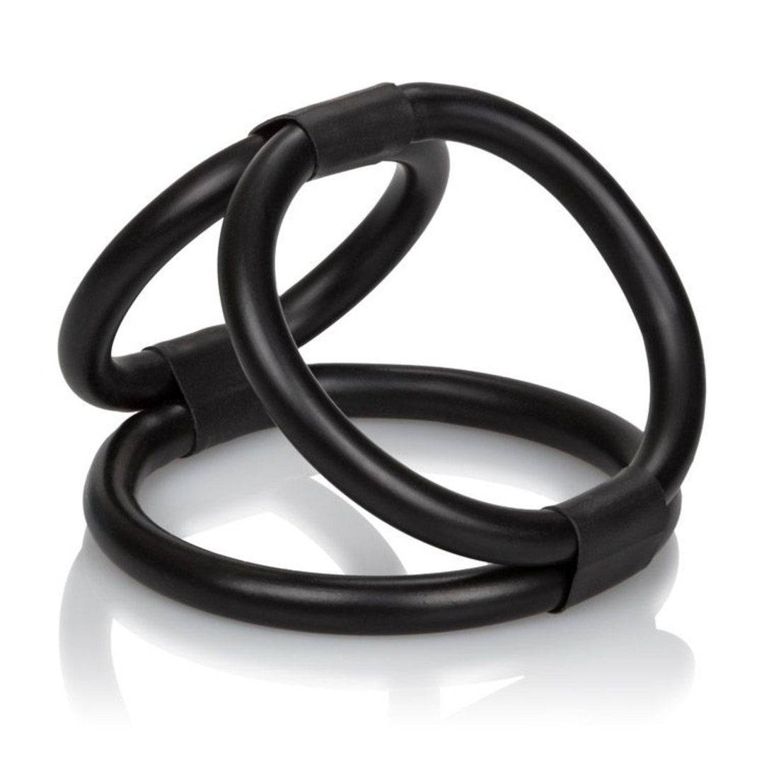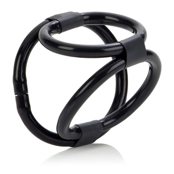 The cock cage comprises of 3 different sized rings, measuring from small, medium, and large. Made from smooth, flexible rubber, the tubed rings are designed to slot together to form an erotic stimulation cage around the scrotum and the base of the erect penis.