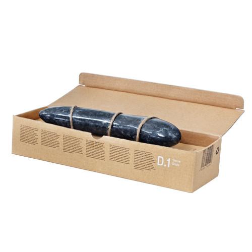 The D.1 Stone Dildo is made of polished Blue Pearl Larvikite from Norway, also called Black Norwegian Moonstone. Its unique shape combined with the quality of the stone allows for light maneuvering, yet firm g-spot stimulation.
