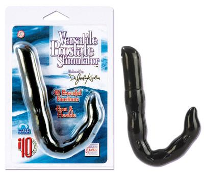 Endorsed by Dr. Joel Kaplan Firm yet flexible stimulator angled for versatile prostate stimulation 10 powerful functions of vibration, pulsation, and escalation Push button controls with auto off PVC (probe) ABS (cap) Batteries included (2 N) 3"x .75"/ 8 cm x 2 cm (insertable) 3"x 1"/ 8 cm x 3 cm (external stimulator)