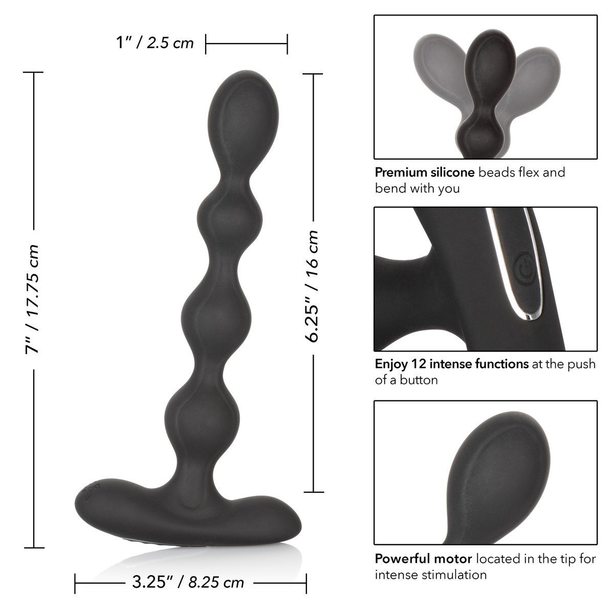The Eclipse Slender Beads are a sexy, flexible silicone probe created to ease you into thrilling anal pleasure. The pliable design, beaded shaft and powerful motor allows this probe to flex with your movements and deliver intense stimulation.