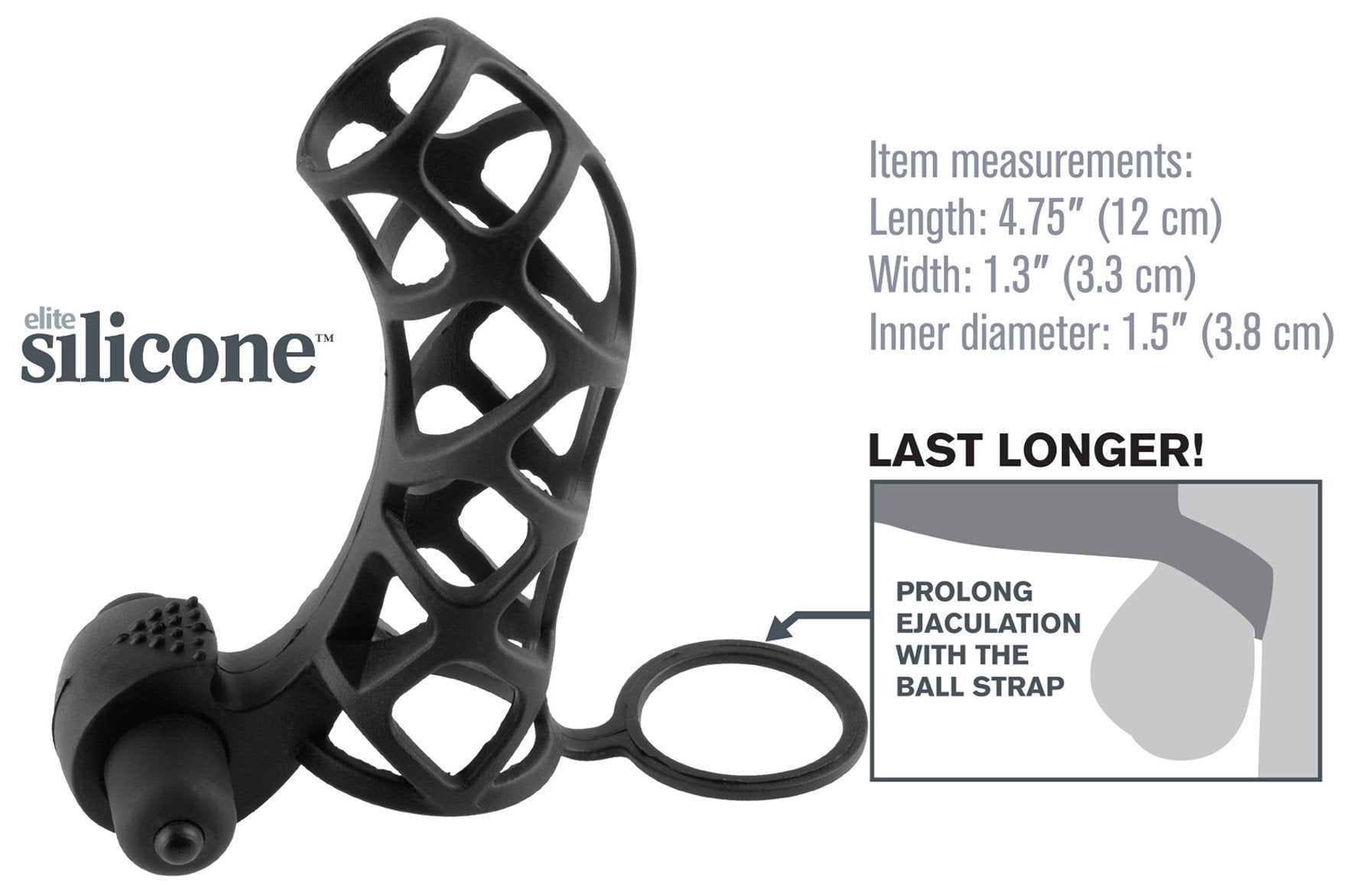 The Extreme Silicone Power Cage is the ultimate erection enhancer! With this cock cage wrapped snug around every inch of your manhood, you'll maintain rock hard erections and prolong the fun while you stimulate your partner. The ball strap prolongs ejaculation for explosive climaxes, while the cage leaves your cock open to feel every sensation and still enjoy the natural touch of your lover. you'll enjoy thick, throbbing erections and your partner will love the cages added sensations. The vibrating clit stimulator delivers direct stimulation to their most sensitive spot. Just one click of the powerful waterproof micro vibe and you'll make them cum harder than ever before!