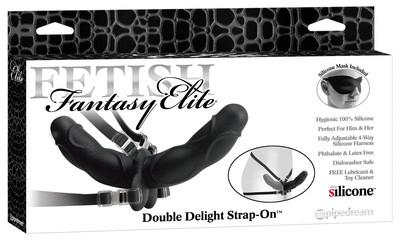 When your fetish-play demands the best materials possible only the Fetish Fantasy Elite line will do! Made from 100% medical-grade Elite Silicone this ultra-premium collection is body-safe hypo- allergenic and sculpted to excite. Elite Silicone quickly warms to body temperature and conforms to the body's contours giving users the most realistic stimulation ever imagined. It's phthalate-free latex-free nonporous and the safest sex toy material on the market today! Double your pleasure and double the fun with this incredible dual-ended strap-on. One end of the silicone dildo stimulates the wearer while the other end pleases your partner. Both silicone shafts are cleverly curved to hit all the right spots while the comfortably silicone harness stays in place when the action heats up. Every strap of the silicone harness easily adjusts to fit most sizes. To adjust just slide the straps until the waistband is snug and the thigh straps feel tight then connect the plastic Smart Clips in the back by hooking them together. The straps won't move and won't come loose during the heat of the moment. Cleanup is a snap after the fun with Pipedream Toy Cleaner and warm water. This double dildo can also be placed in the dishwasher for safe sterilization. Use plenty of Moist lubricant for(more...)