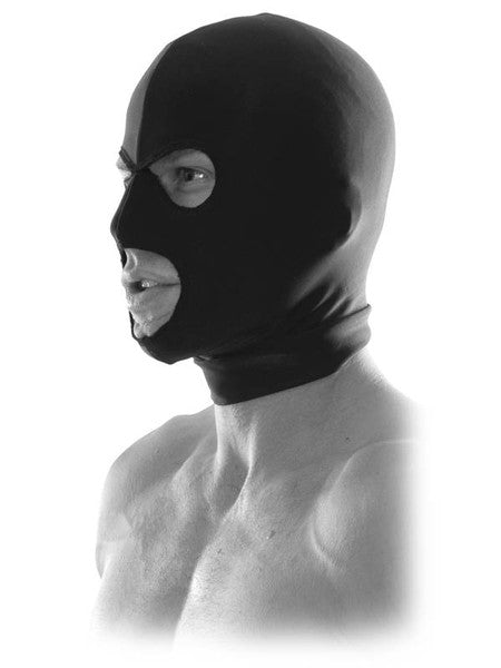 Keep your submissive incognito with this Spandex 3-Hole Hood. This comfortable open-mouth and eyes hood is designed to stretch completely over the head while the thin lightweight fabric makes breathing and hearing a snap. Best of all your subject can still see and you still have access to their mouth!