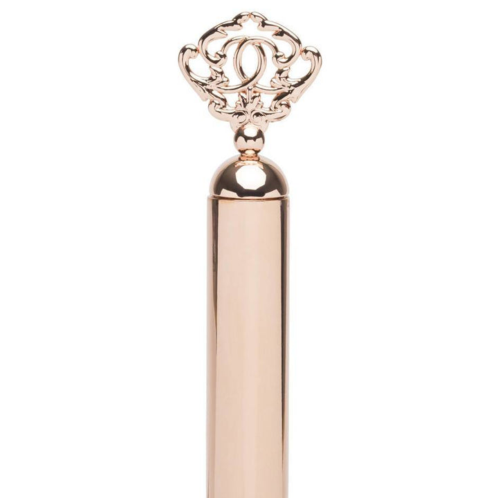 Ultra-versatile and built to tease and satisfy, this beautiful spanking tool is perfect for those who want to explore the world of impact play. Revel in the sight of the soft suede tendrils trailing and cascading over your lover's skin, and experience utter control thanks to the cool, weighty rose gold handle.