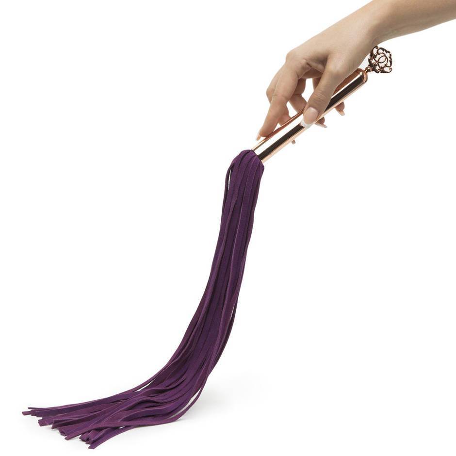 - Suede flogger in deep plum with rose gold handle for deluxe sensory play