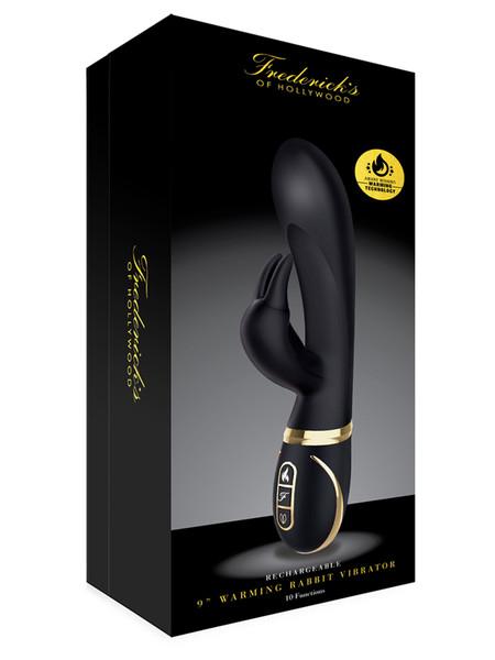 Enjoy a lifelike warm feel paired with powerful vibration with Frederick’s of Hollywood’s Rechargeable 9” Warming Rabbit Vibrator. Featuring 10 thrilling settings of vibration, this rabbit vibe is a must-have to obtain the ultimate orgasm — a curved shaft encased in smooth silicone warms and vibrates for internal stimulation unlike any other, while the rabbit buzzes against the clit.