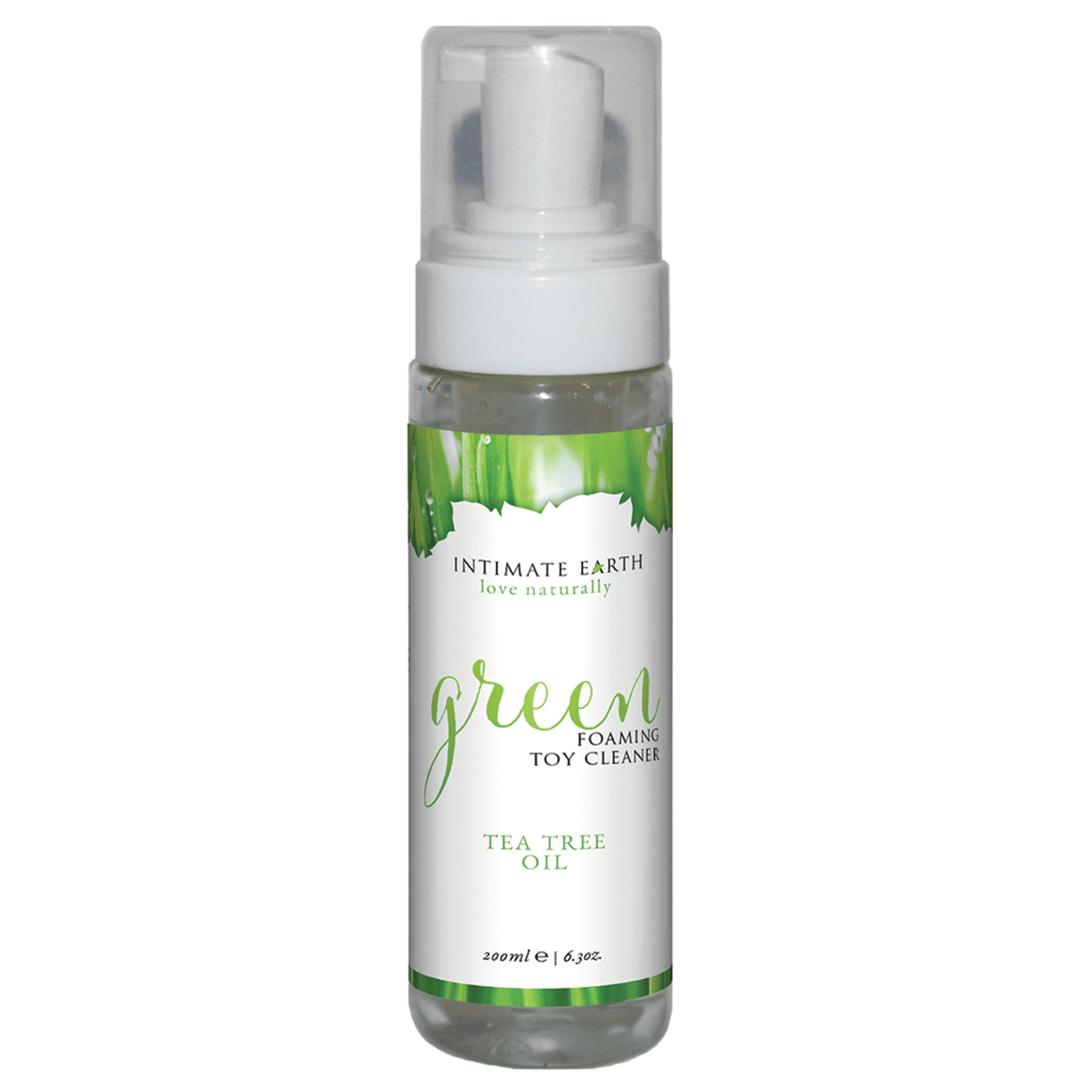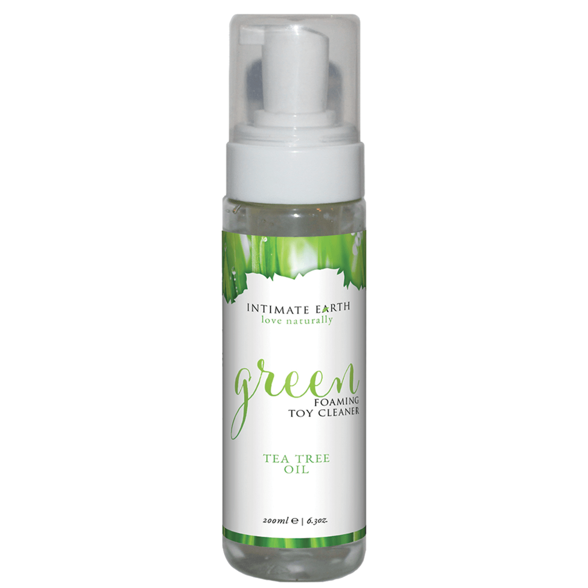 Green Tea Tree Oil Foaming Toy Cleaner from Intimate Organics safely and thoroughly cleans all plastic, silicone, glass and stainless steel toys, without the use of Triclosan, paraben, alcohol or other harsh chemicals. 100 ml