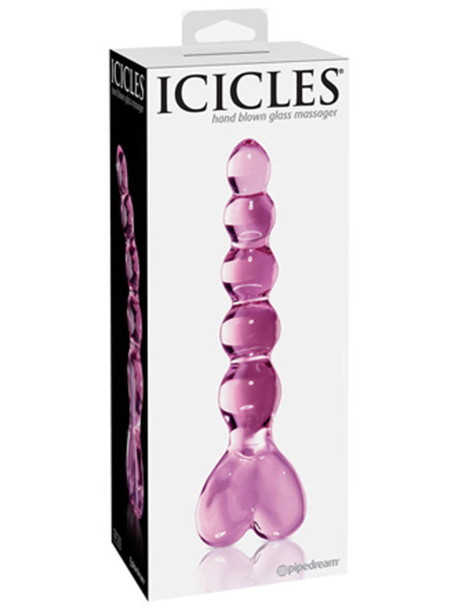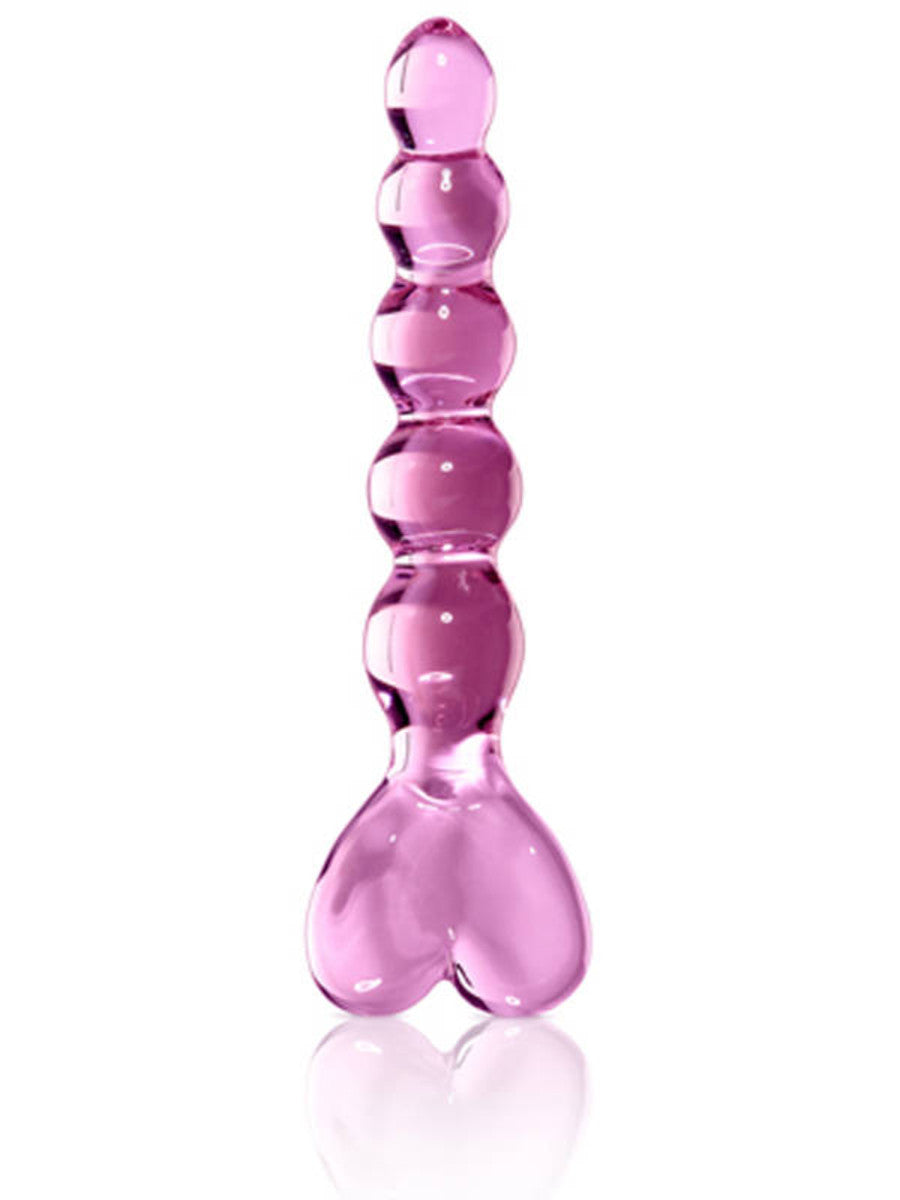 Youll be sure to feel the love with this luxurious glass massager. Featuring a tapered tip to ease insertion and a heart-shaped handle for safe and easy handling, this beaded shaft offers the ultimate vaginal or anal stimulation. Cleverly curved to hit all the right spots, the shaft bends upwards for explosive G-Spot and P-Spot stimulation.