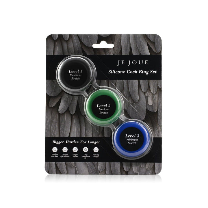 These three luxury Je Joue Silicone Cock Rings get progressively tighter, allowing you to experiment with different sensations and combinations. The perfect set for anyone looking to work their way up to the most intense and prolonged orgasm possible.