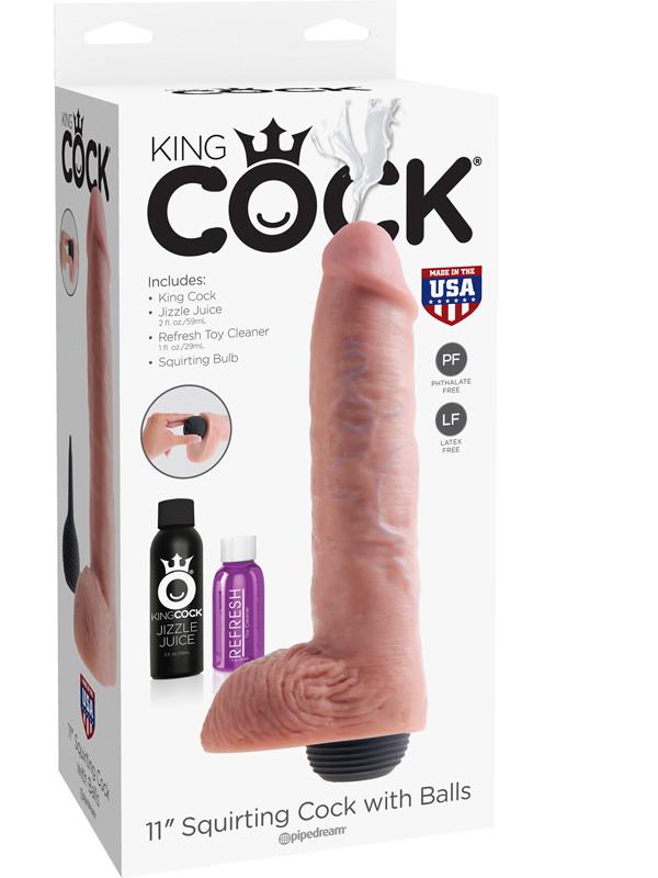 This King Cock Squirter is ultra-realistic and will satisfy all your cravings for cum-play! Hand-sculpted with amazing attention to detail and featuring our exclusive Jizzle Juice squeeze-bulb, the King Cock Squirters are the most satisfying ejaculating dildos on the market! Every King Cock Squirter is phthalate-free, latex-free, body-safe, hypoallergenic, and proudly made in the USA.