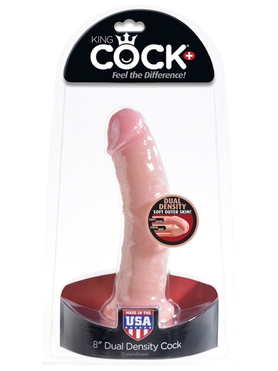Feel the difference with this King Cock Plus Dual Density dildo. Made of lifelike Fanta Flesh®, it has a firm, erect core on the inside and a soft, fleshy layer on the outside! The detailed textures of the skin provide even more of the realistic feeling that you're looking for. Combined, it is truly the most lifelike TPE dildo you will ever experience! The powerful suction-cup base sticks to nearly any smooth, flat surface and ensures that each dildo is harness-compatible for strap-on fun. All King Cock products are proudly made in the USA and are phthalate-free, latex-free, and completely body-safe.