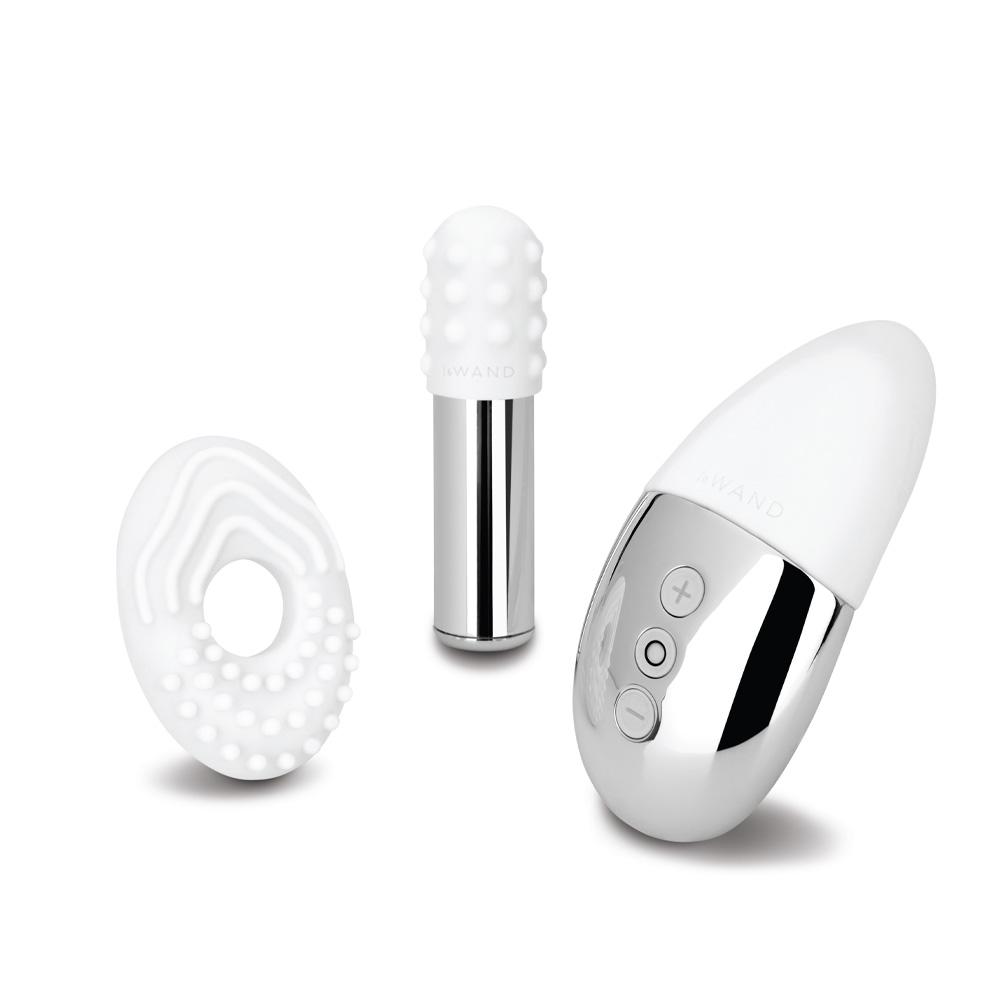 Le Wand Point features a body-safe silicone contoured shape and intuitive controls, while the Bullet comes with a removable textured silicone sleeve and ring for added pleasure. Each vibe is USB rechargeable with the included charger.