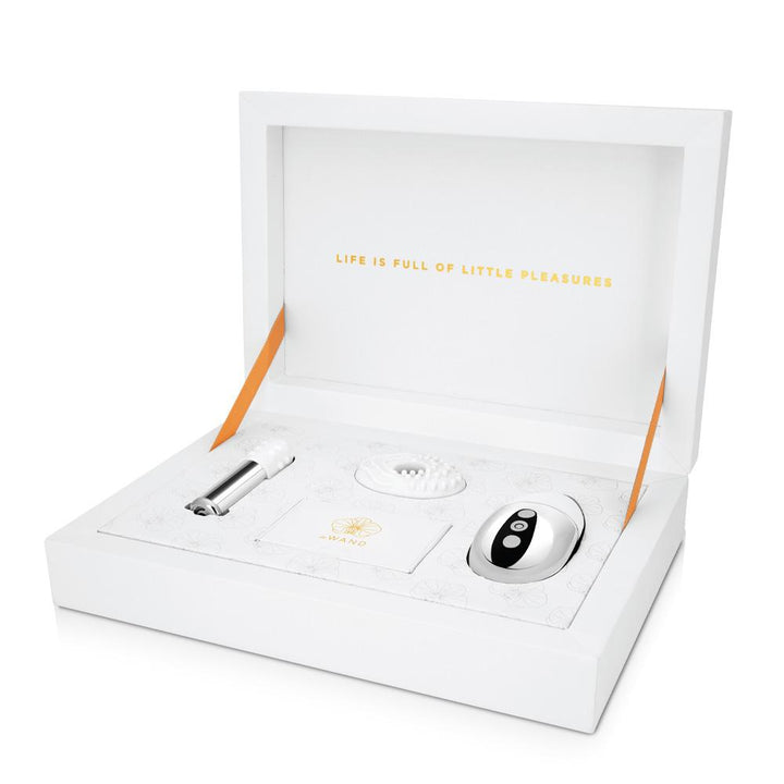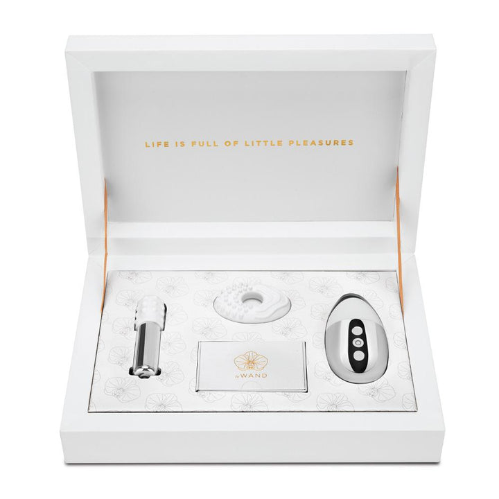 Just like indulging in life’s simple pleasures can spark joy daily, Le Wand’s Chrome Little Pleasures set includes the essentials for instant sensual satisfaction. Featuring the Le Wand Bullet and Le Wand Point rechargeable vibes in a lustrous, Special Edition White and Silver Chrome finish, each powerful palm-size vibe delivers its own unique stimulation.