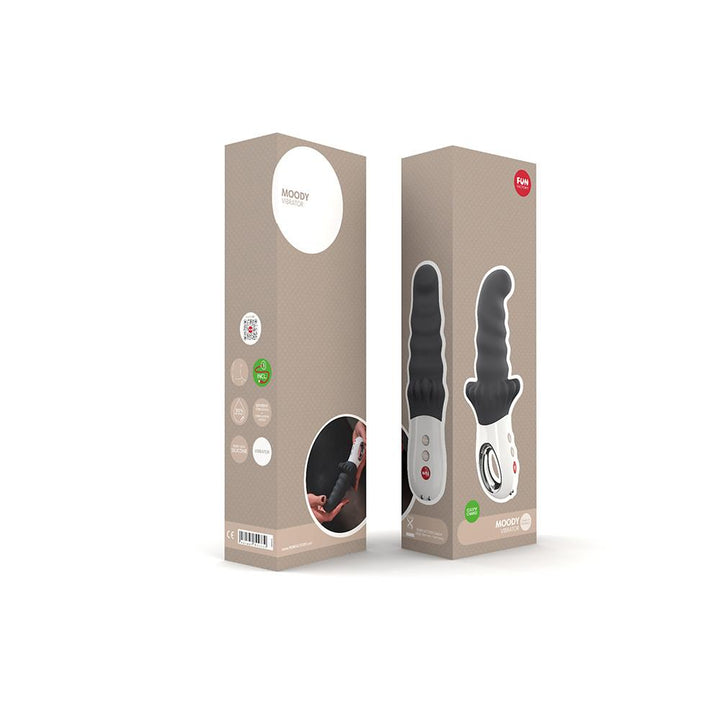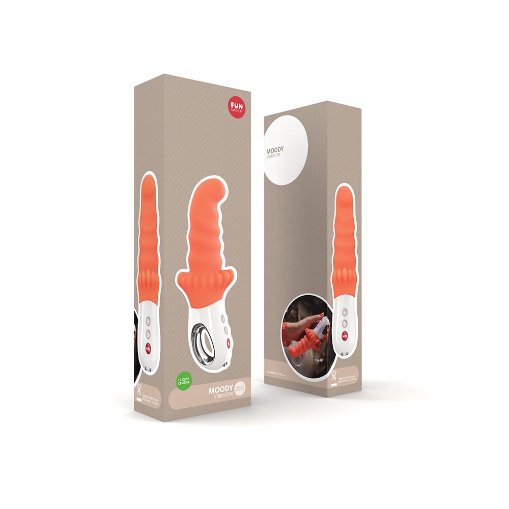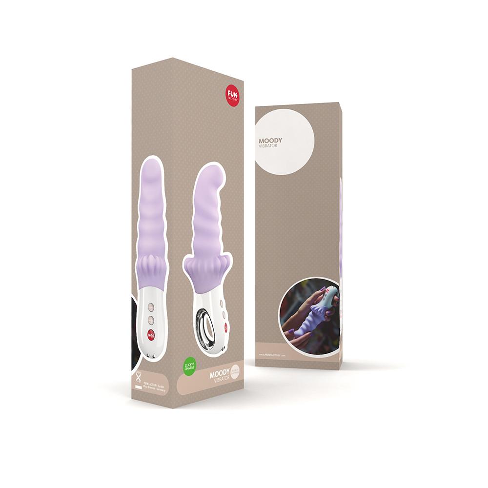 Suit your mood. Twisted and curved for lots of ways to play plus a powerful, rumbling motor. FlexiFUN Technology™  that moves with your motion Moody is great for G-spot, prostate, and external vibration!