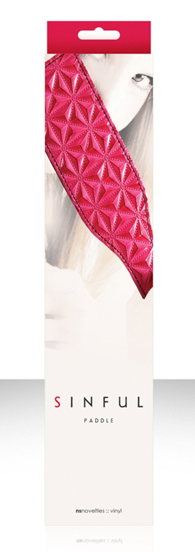 Get kinky in pink with the Sinful line. The paddle is attractive and stylish while still offering a stimulating sensation when wielded in the proper hand. Made of high quality durable and long lasting materials. Add a spark of excitement to your play time. Made of vinyl and leather.