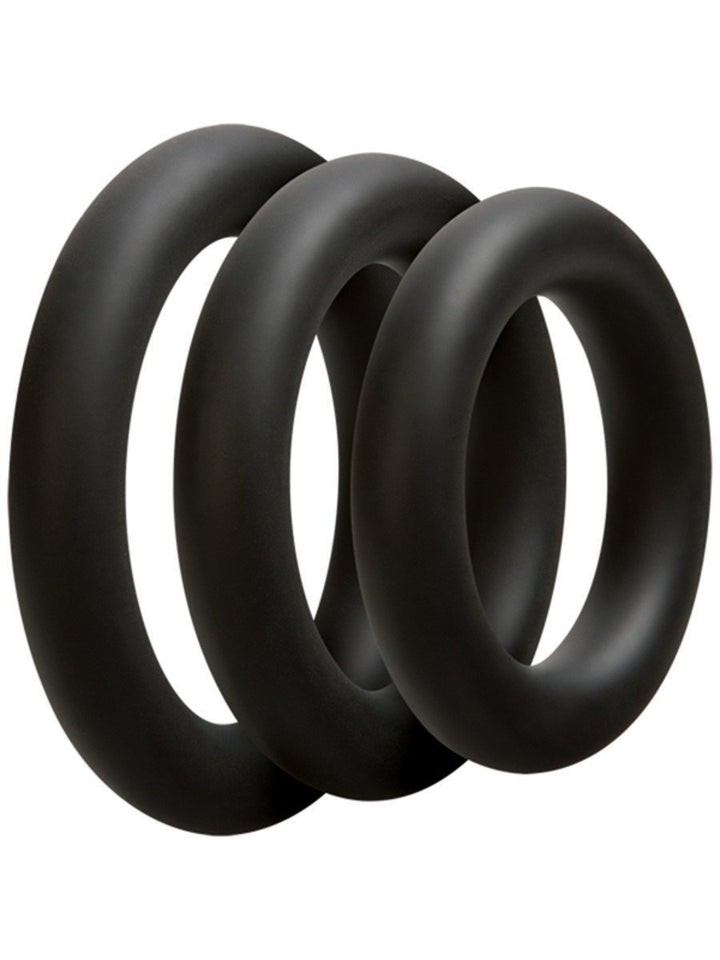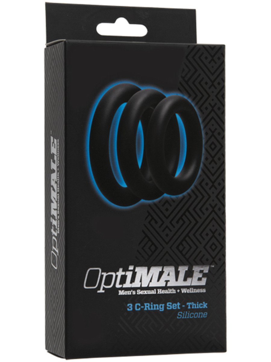 Optimise your experience with these silicone cock rings! The OptiMALE Thin C-Ring Set offers enhanced size and girth with three rings in 32mm, 37mm, and 42mm diameters. These rings are ultra-stretchable for easy use around the shaft or testicles, maintaining those long-lasting erections you’ve always dreamed of, and prolonging your ejaculation. Available in Black and Slate; phthalate-free silicone.
