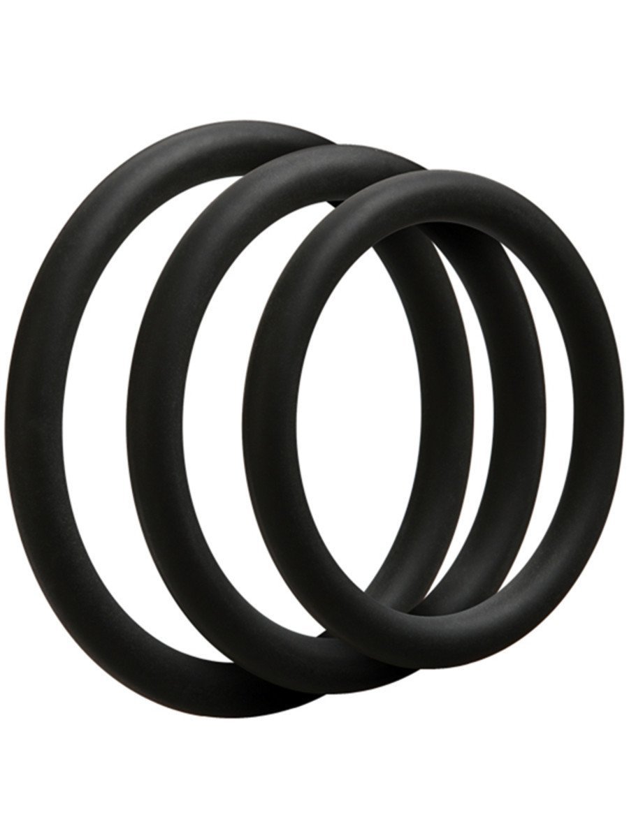 Optimize your experience with these silicone cock rings! The OptiMALE Thick C-Ring Set offers enhanced size and girth with three rings in 40mm, 45mm, and 50mm diameters. These rings are ultra-stretchable for easy use around the shaft or testicles, maintaining those long-lasting erections you’ve always dreamed of, and prolonging your ejaculation. Available in Black and Slate; phthalate-free silicone.