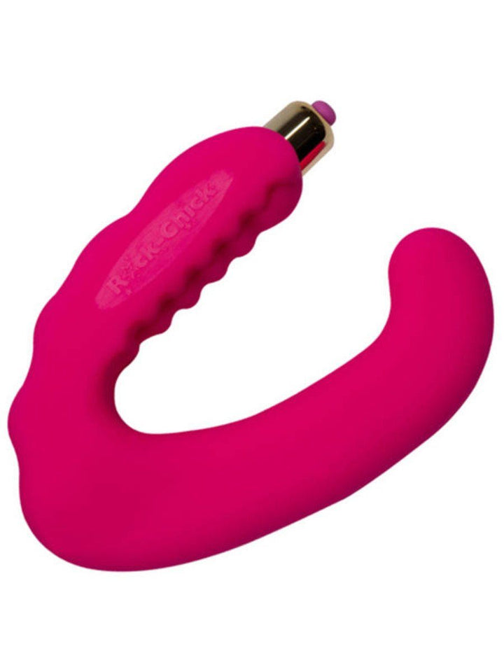 Legendary Rock-Chick is the first and best hands-free clitoral and G spot stimulator that's guaranteed to rock you into an explosive orgasm over and over again! Power boosted by the RO-80 7 speed Bullet, Rock-Chick's hands-free design is perfect to use either on your own or for double the passion with a partner. Heat your Rock-Chick up by running it under warm water or if the mood takes you, cool it down in the freezer to feel that extra tingling zing. Beautifully feminine, soft, flexible and sensual to the touch Rock-Chick is 100% waterproof so rockin' wherever and whenever you want is oh, oh soooo easy.