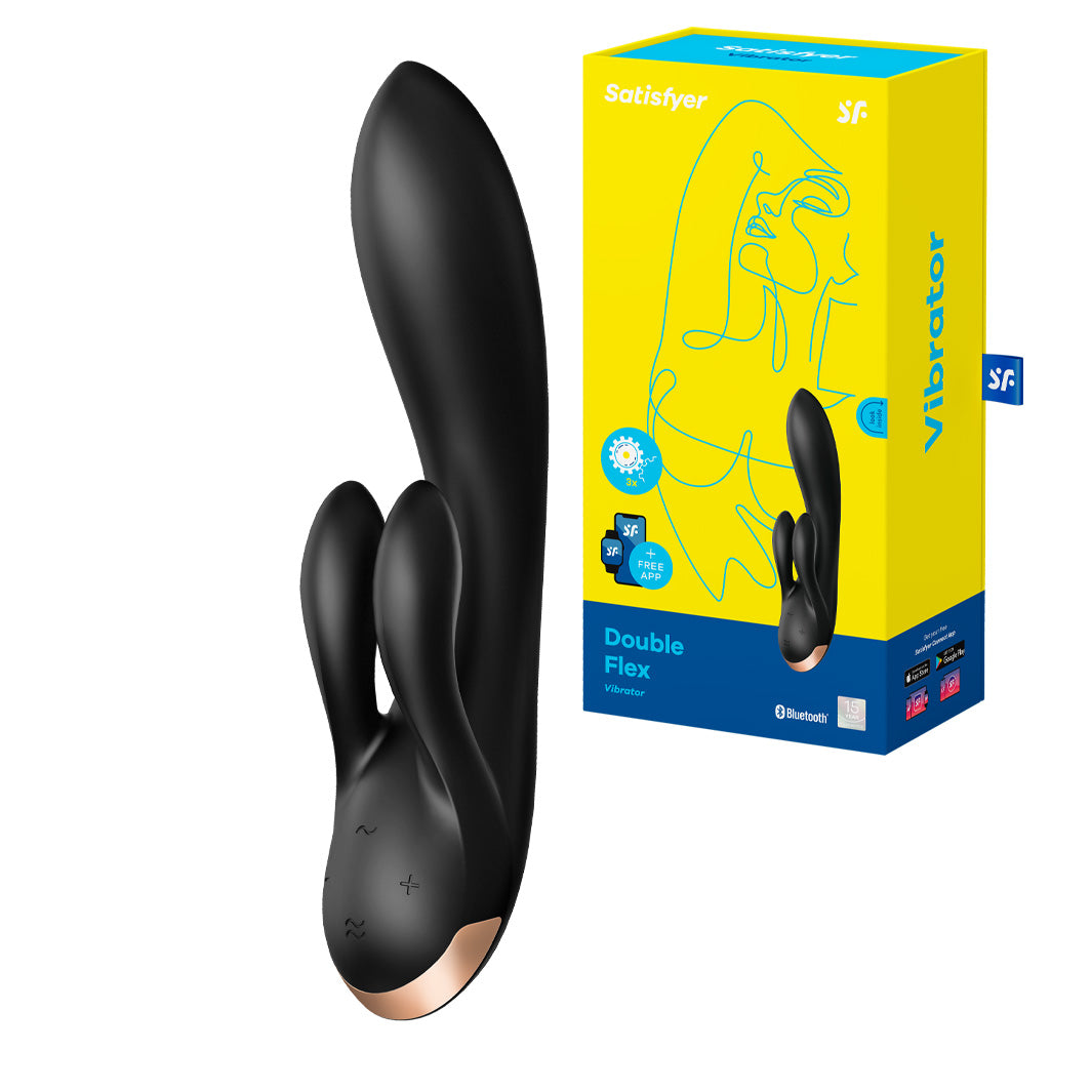 Double the flex, double the fun! Get streamlined and powerful vibrations that contour to your body through the Silicone Flex Technology built into the innovative rabbit style Satisfyer Double Flex!