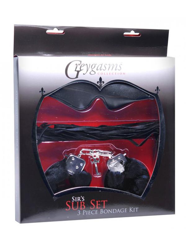 There I was devotedly blindfolded, hands seductively pointing an arrow toward my derriere, waiting anxiously for Sirs next instruction...Stay still, my dear, you are in for a treat...then I hear the whip. Sirs Sub Set, a naughty collection of BDSM essentials. A superb mingling of one black out blindfold that is padded and lined with soft fabric and Velcro fittings that allow for a deviously tight fit. And cuffs, a sensation play of hard metal and soft fur, to keep you in your place. The adjustable fit ensures a comfortable experience for the wearer. Locks on both cuffs and a set of two working keys and a chain connector that allows for looping other bondage restraints through for even more play. The whip, in sensual black suede, is separated just right for that modicum of sting.