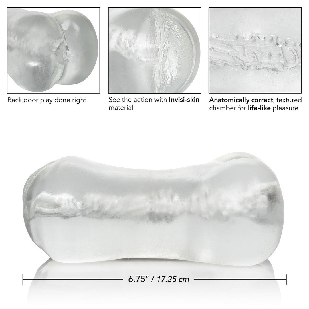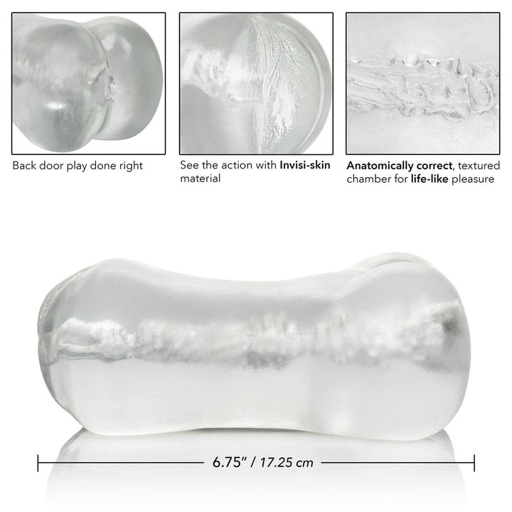 Over 1 lb/.45 kg of heavy-duty stroking pleasure Ultra-thick chamber sleeve for magnified results Invisi-skin material lets you see the action Anatomically correct, textured chamber Closed end for superior suction Maintenance free