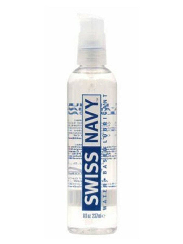 Our Swiss Navy® Water Based lubricant has a viscosity unlike any other water based lubricant. Swiss Navy® Water Based comes out like a gel and liquefies with friction so it stays where you put it.